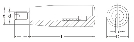 JS.103003 轉動手柄 顏色:亮光黑或鍍鉻 材質:酚醛樹脂(膠木)或碳鋼 用途:適用于各類機械上緊固位置的靈活調節 特性:光澤感強、外形美觀、機械強度高、堅固耐用、標準化使用、安裝簡便
