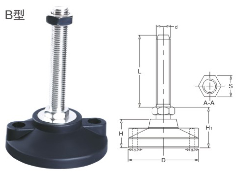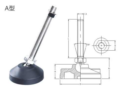 JS.108007 關節蹄腳 顏色:黑色 材質:增強尼龍、碳鋼 用途:適用于小型設備的水平調整及減震