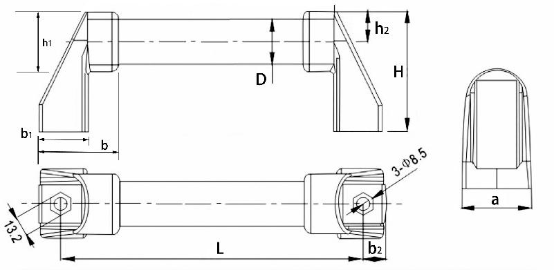 材質:管身(鋁合金)、拉手支座(增強尼龍含30%玻璃纖維)
