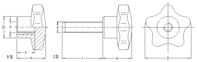 JS.102007 Five-pointed star knobs Color: Photo Black Material: Phenolic resin (bakelite) Usage: Suitable for all kinds of machinery and equipment, hardware tools, stage lighting equipment and other industries